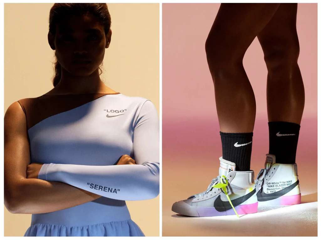 Nike x Virgil Abloh x Serena Williams – Ta kolaboracja była nie tylko wyjątkowa, ale także inspirująca. Virgil Abloh, we współpracy z Nike, zaprojektował kolekcję ubrań sportowych dla Sereny Williams. Kolekcja ta miała na celu podkreślenie siły i determinacji Williams na korcie, równocześnie łącząc to z unikalnym stylem i estetyką Off-White. Buty do tenisa, stroje i akcesoria zaprojektowane przez Abloha były zarówno funkcjonalne, jak i stylowe, dając sportowcom możliwość wyrażania siebie na korcie w oryginalny sposób.