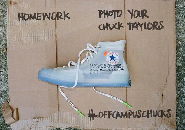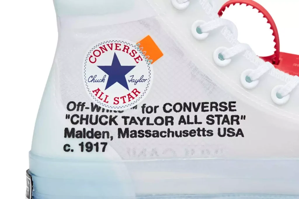 Converse Chuck 70 x Off-White – Ta kolaboracja pomiędzy Off-White a Converse to hołd dla klasycznego modelu Chuck 70. Virgil wprowadził swoje charakterystyczne elementy do tego kultowego buta, takie jak pasy z napisami „VULCANIZED” i „SHOELACES”, a także charakterystyczne przewiązania sznurówek. Efektem tego było stworzenie limitowanej edycji butów, które szybko stały się przedmiotem pożądania dla miłośników sneakersów na całym świecie.